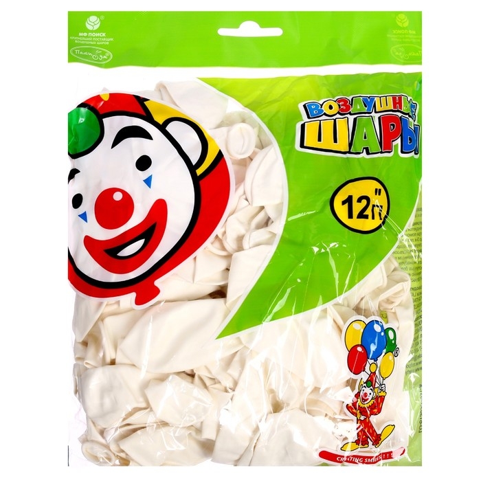 Шар латексный 12", пастель, набор 100 шт., цвет белый