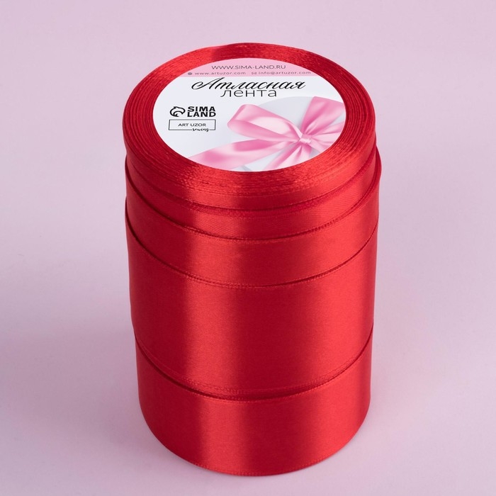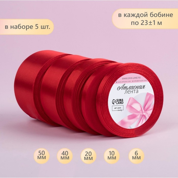 Набор атласных лент, 5 шт, размер лент: 6/10/20/40/50 мм × 23 ± 1 м, цвет красный