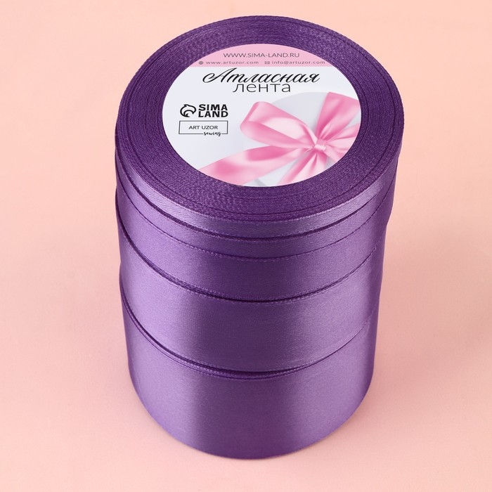 Набор атласных лент, 5 шт, размер 1 ленты: 20 мм × 23 ± 1 м, цвет фиолетовый спектр