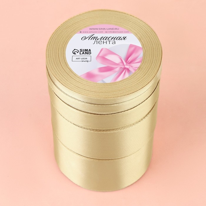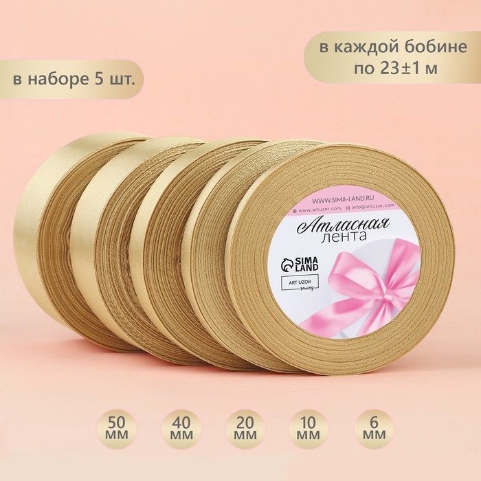 Набор атласных лент, 5 шт, размер лент: 6/10/20/40/50 мм × 23 ± 1 м, цвет бежевый