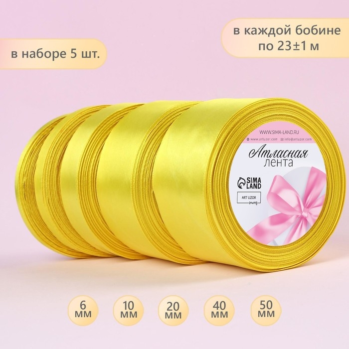 Набор атласных лент, 5 шт, размер лент: 6/10/20/40/50 мм × 23 ± 1 м, цвет жёлтый