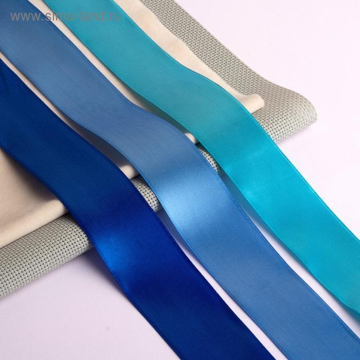 Набор атласных лент, 3 шт, размер 1 ленты: 40 мм × 23 ± 1 м, цвет синий спектр