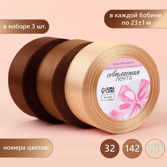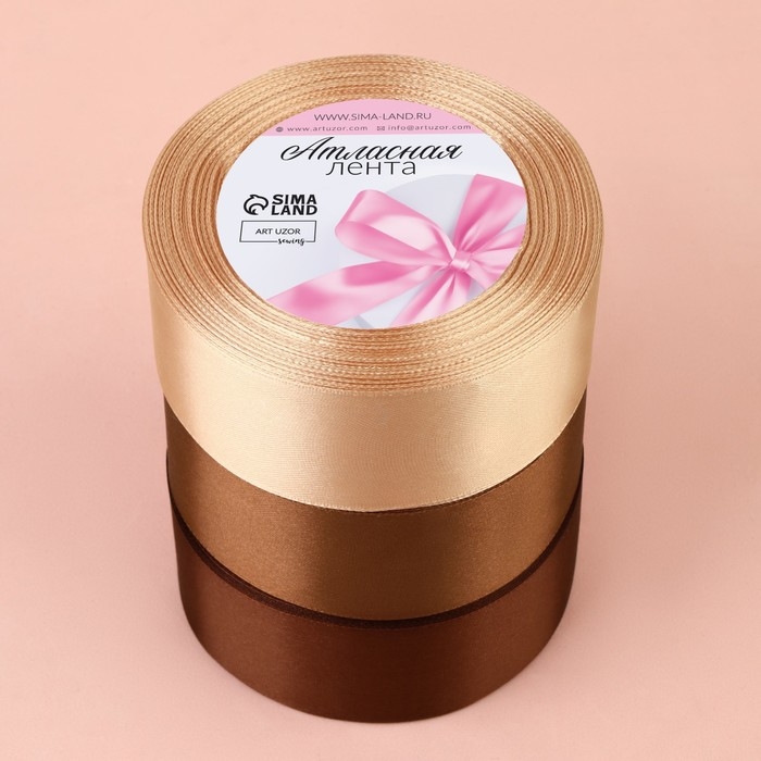 Набор атласных лент, 3 шт, размер 1 ленты: 40 мм × 23 ± 1 м, цвет коричневый спектр