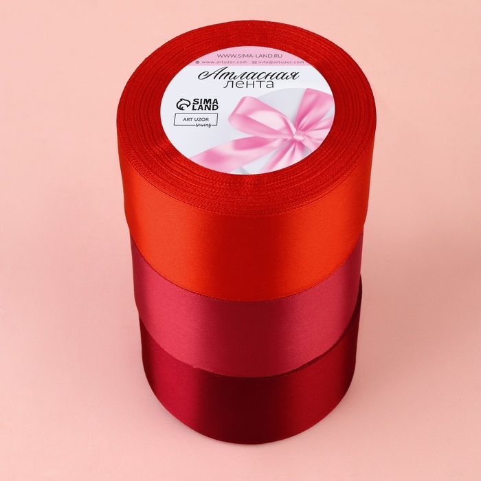 Набор атласных лент, 3 шт, размер 1 ленты: 50 мм × 23 ± 1 м, цвет красный спектр