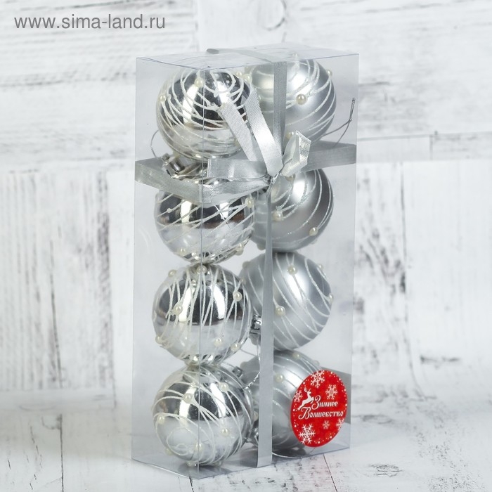 Набор шаров пластик d-6 см, 8 шт "Жемчужный орион" серебро