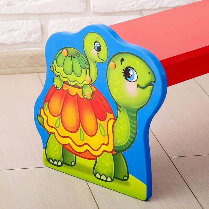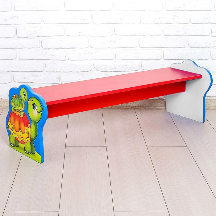 Скамейка подойдёт для игровой площадки, детского сада или частного дома. Спинка и сиденье выполнены из дерева, боковые части — из МДФ. Изделие окрашено водоотталкивающей краской, рисунок нанесён методом печати.