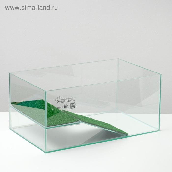 Комплект террариумов выполнен из высококачественного стекла, благодаря евро кромке имеет высокую защиту от трещин, сколов, что повышает степень безопасности при эксплуатации. Крышка надежно защищает от пыли, оснащена двумя патронами под лампу Е14. Компактные размеры террариума позволяют разместить его в любом удобном месте, что делает его более доступным и удобным для использования и ухода. Благодаря удобной полке и лесенке любимец будет обеспечен кусочком суши и комфортными условиями для существования. Указан номинальный объём террариума.
