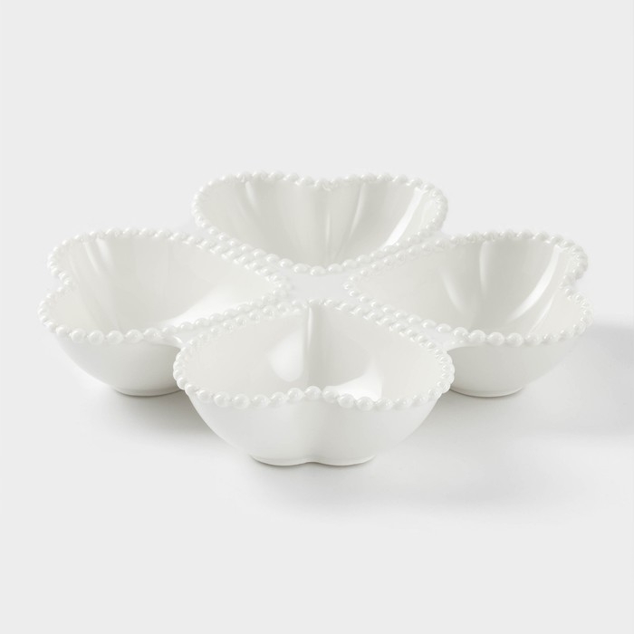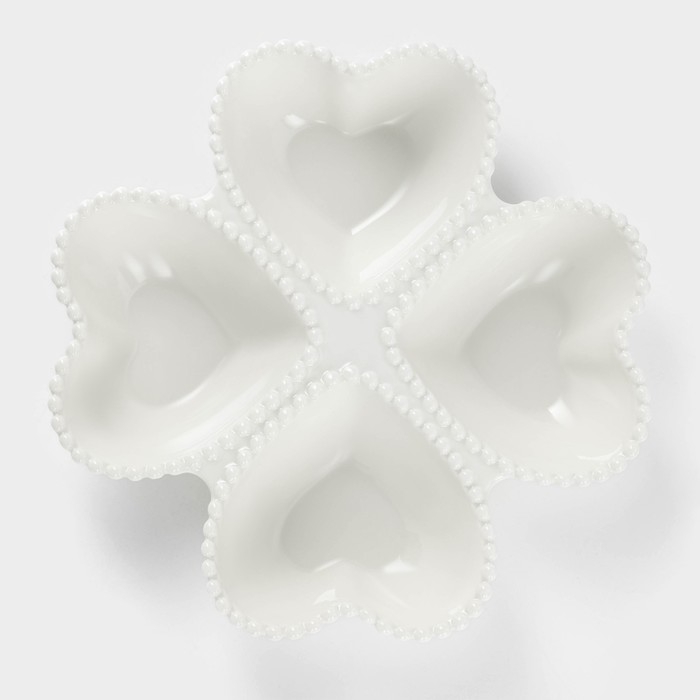 Менажница керамическая 4 ячейки «Сердца», 25×4,5 см, цвет белый