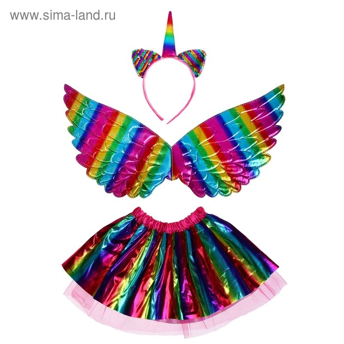 Карнавальный набор «Единорог», 3 предмета: ободок, крылья, юбка