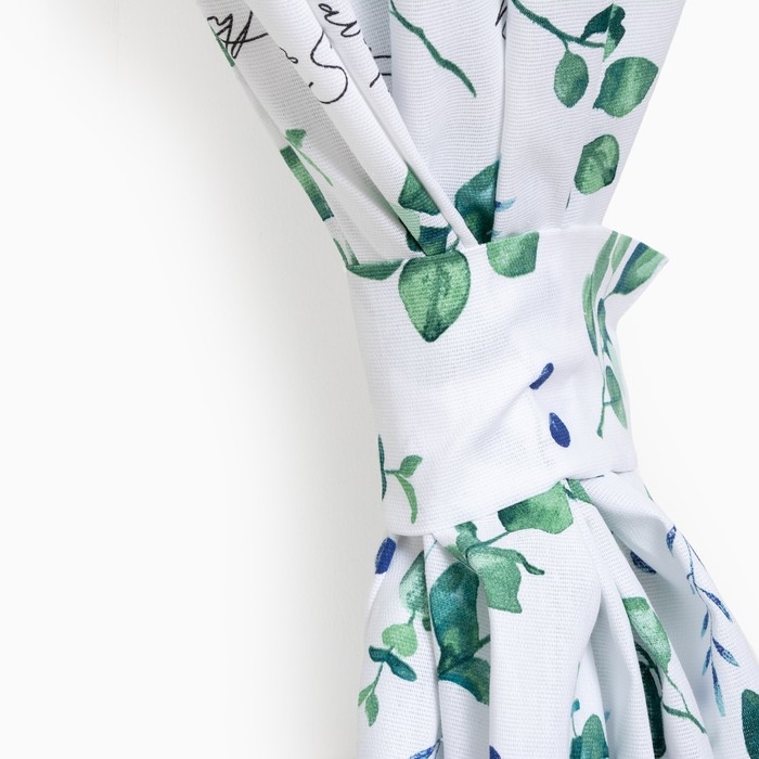 Шторы для кухни "Доляна" Eucalyptus 150*180 см- 2 шт, подхваты - 2 шт, 164г/м2, 100% хл