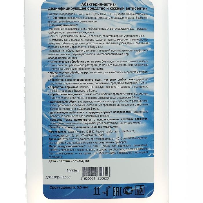 Антисептик "Абактерил-Актив", кожный, дозатор 1 л