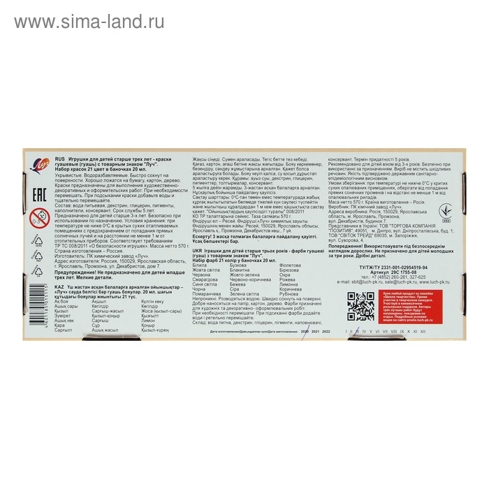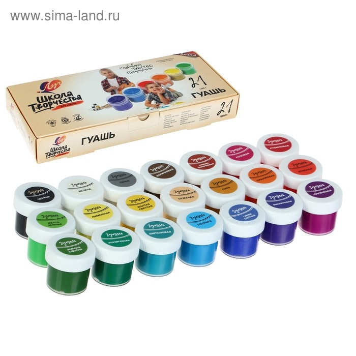 Гуашь 21 цвет х 20 мл "Школа творчества"