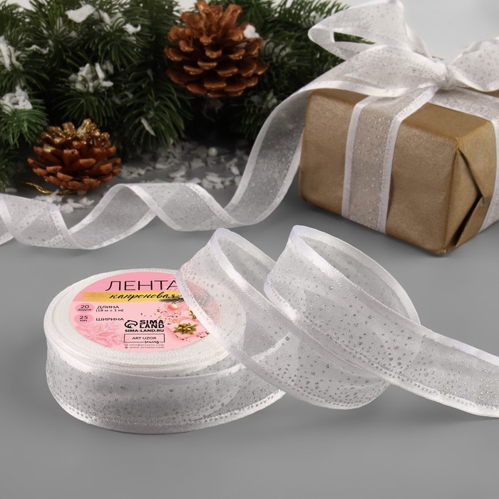 Лента капроновая «Блёстки», 25 мм × 18 ± 1 м, цвет серебряный