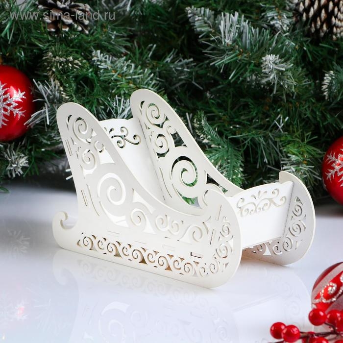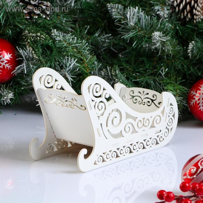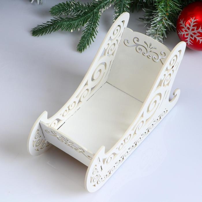 Кашпо деревянное, 23×10×14 см "Новогоднее. Санки", подарочная упаковка, белое