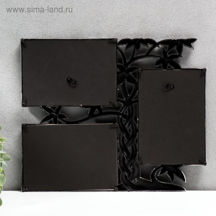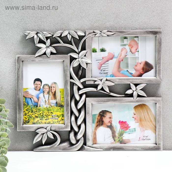 Фоторамка пластик на 3 фото 10х15 см "Дерево-косичка" тёмное серебро 32,5х26,5х2 см