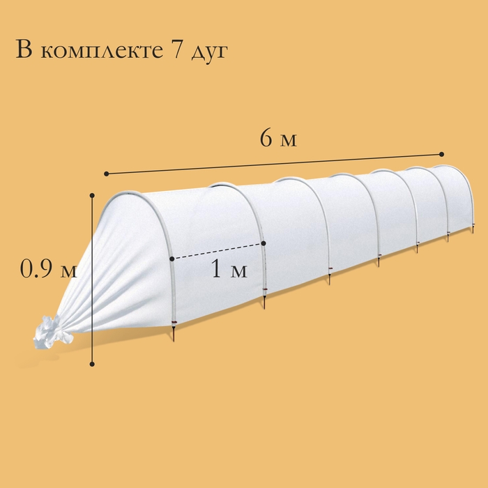 Парник прошитый, длина 6 м, 7 дуг из пластика, дуга L = 2.4 м, d = 16 мм, спанбонд 35 г/м², «уДачный»