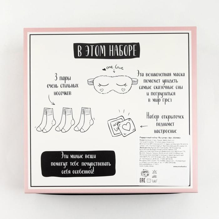 Подарочный набор "Ты супер" маска для сна, носки 3 пары