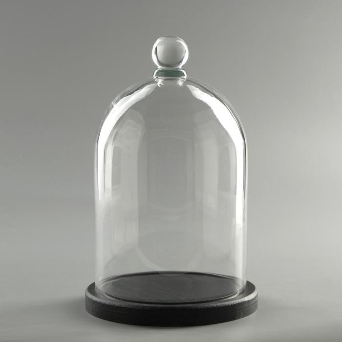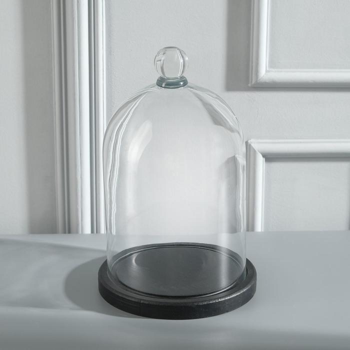 Стеклянный купол-клош с шариком на подставке "Родрик", 24х15 см, стекло, черный