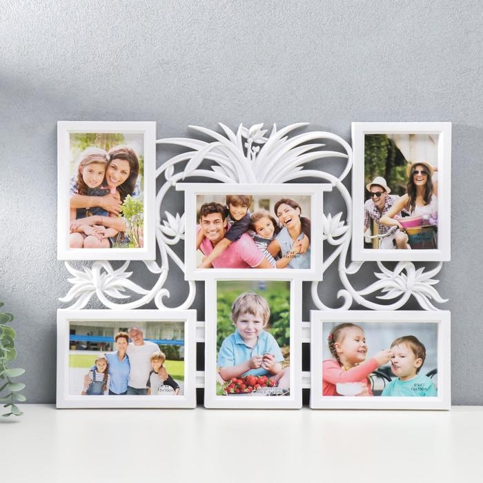 Фоторамка пластик на 6 фото 10х15 см "Африканская лилия" белый 36х49 см