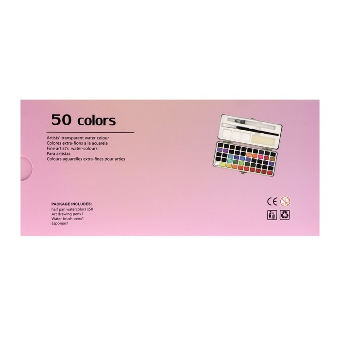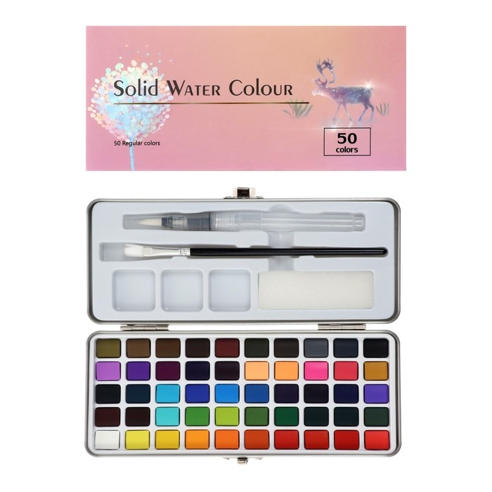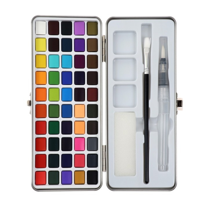 Краски акварельные, 50 цветов в кюветах, в коробке, с кистью