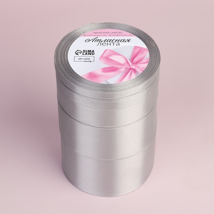 Набор атласных лент, 5 шт, размер лент: 6/10/20/40/50 мм × 23 ± 1 м, цвет светло-серый