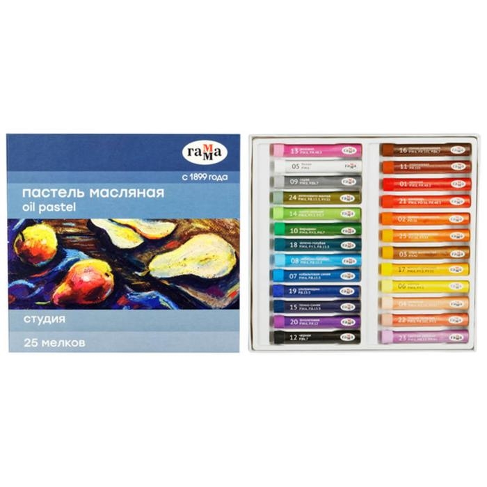 Пастель масляная, набор 25 цветов, "Гамма. Студия", L-57 мм, круглая