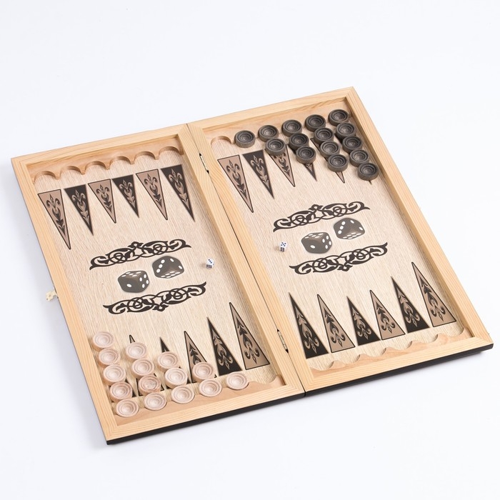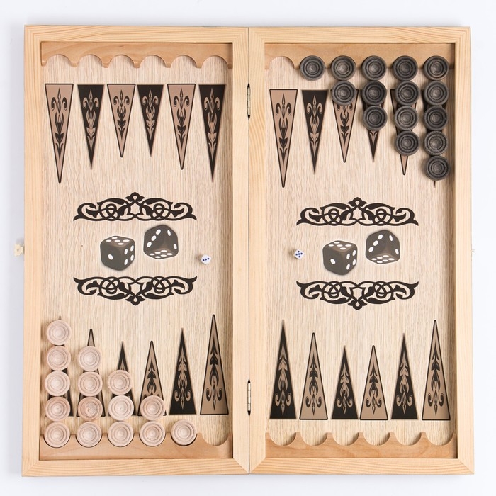 Нарды деревянные большие, настольная игра "Узор", 40 х 40 см, с полем для игры в шашки