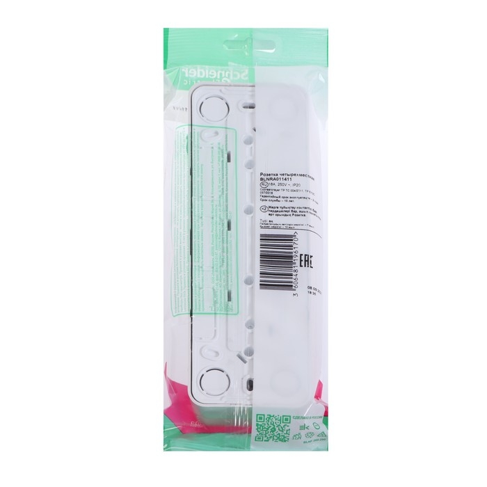 Четырехместная розетка Schneider Electric Blanca с заземлением, шторками и изолирующей пластиной предназначена для сетей до 250 В (~), на ток до 16 А. Четырехместная розетка позволяет подключить четыре устройства в одном месте. Шторки и заземление обеспечивают дополнительную безопасность при косвенном прикосновении.