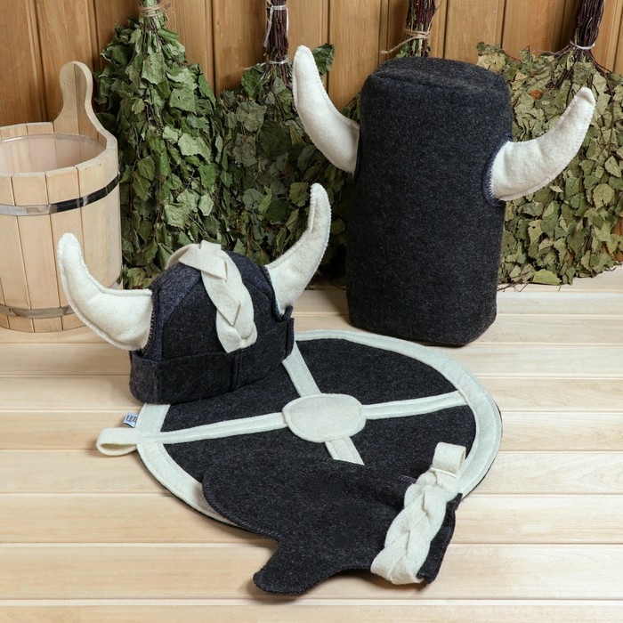 Набор банный 4 предмета "Викинг" Шапка, коврик, портфель, рукавица