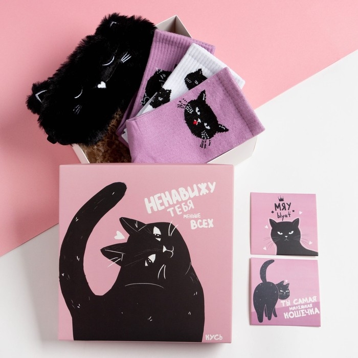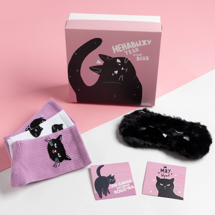 Подарочный набор "Кот" маска для сна, носки 3 пары