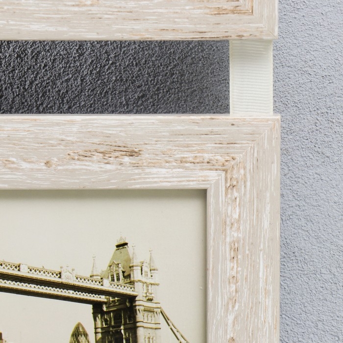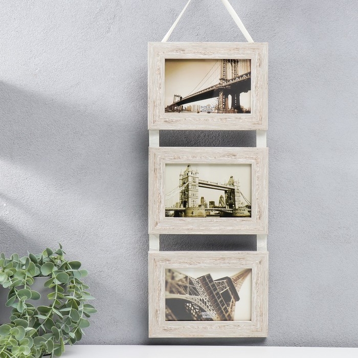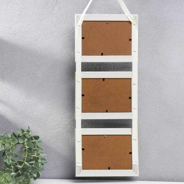 Фоторамка пластик на 3 фото 10х15 см "Белый беж" на ленте 56х19х2 см