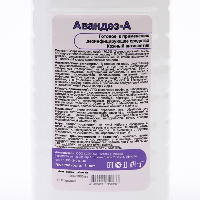 Антисептик Авандез-А, 1 л, с крышкой