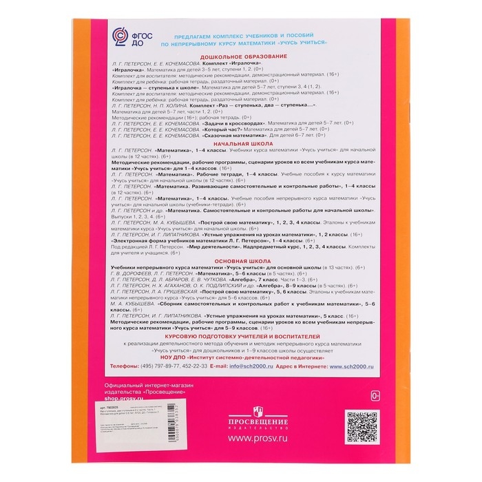 Пособие является составной частью комплекта «Раз - ступенька, два - ступенька...» для детей 5-6 и 6-7 лет. В комплект также входят программа и методические рекомендации, в которых описана система работы по формированию у дошкольников математических представлений, развитию мышления, творческих способностей, интереса к математике.