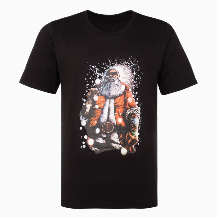 Футболка мужская новогодняя «Дед мороз», цвет чёрный, размер 52