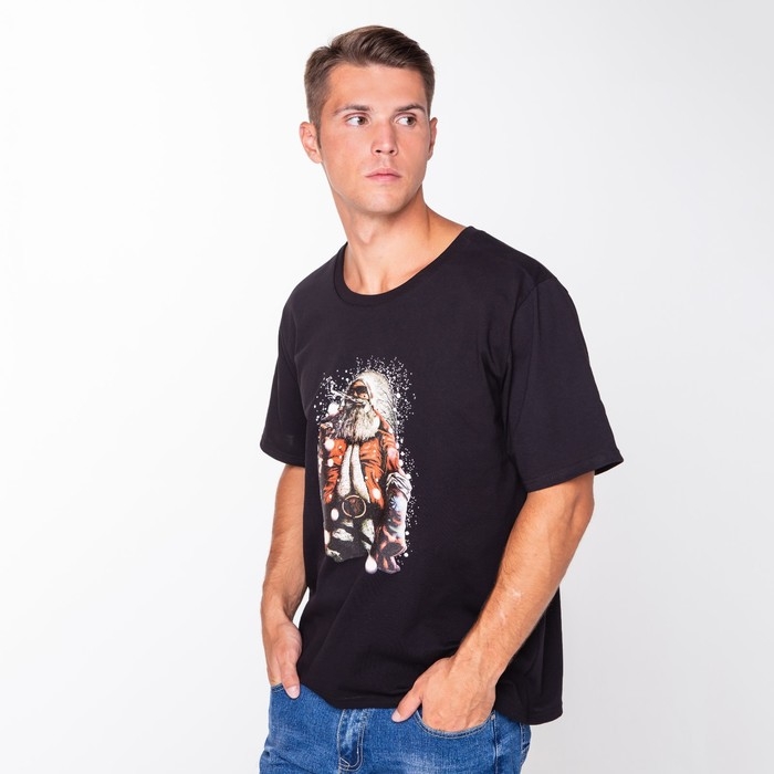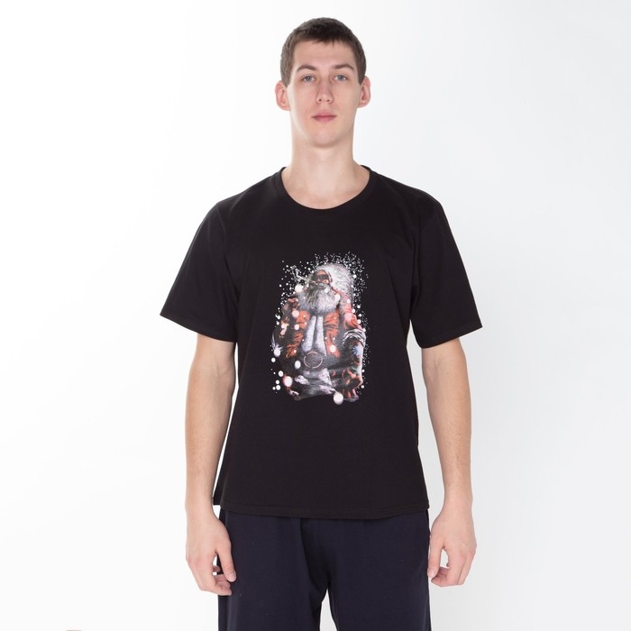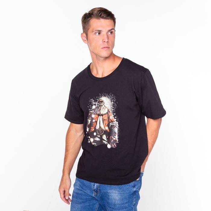 Футболка мужская новогодняя «Дед мороз», цвет чёрный, размер 56
