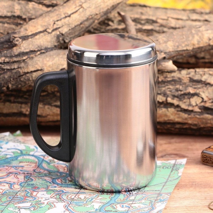 Термокружка металлическая с крышкой - незаменимая вещь для тех, кто проводит свой день в дороге, путешествиях, на даче, на природе.