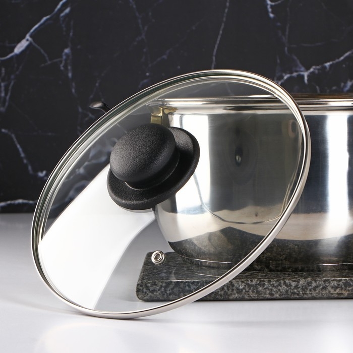 Крышка стеклянная для сковороды и кастрюли «Доляна», d=28 см, нержавеющий обод, пластиковая ручка