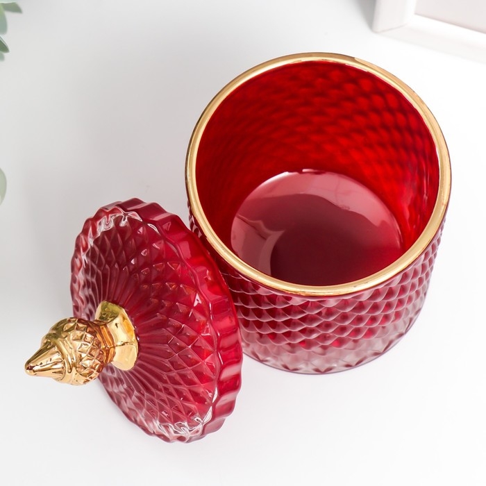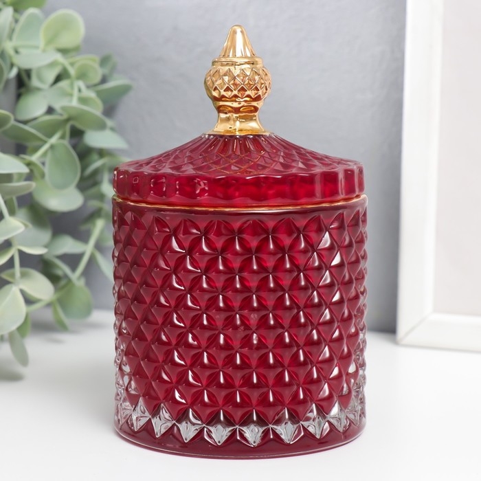Шкатулка стекло "Ромбы и купол" красный с золотом 14х8,2х8,2 см