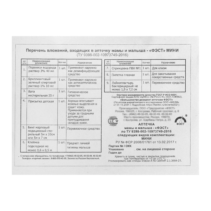 Аптечка для мамы и малыша ФЭСТ №1, для повседневного ухода