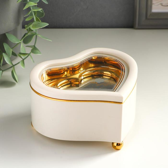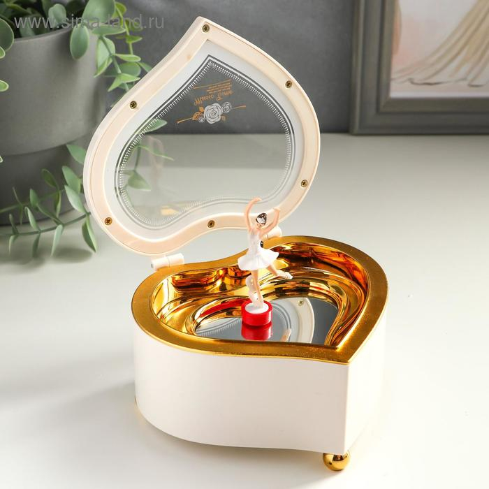 Шкатулка музыкальная механическая "Белое сердце с балериной" 7х13х11,5 см