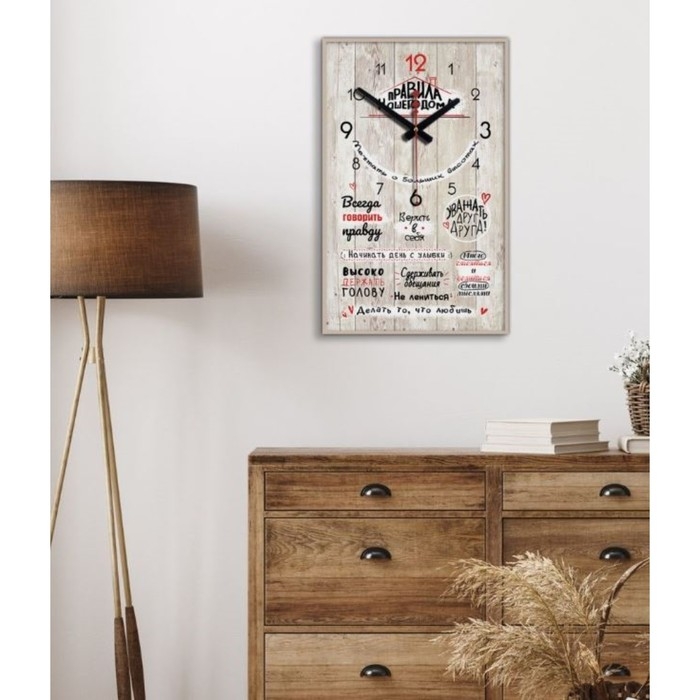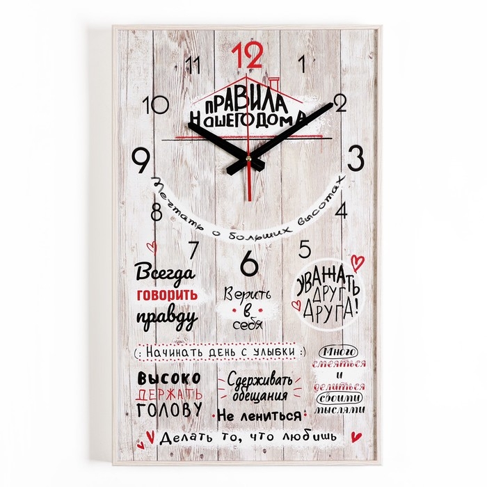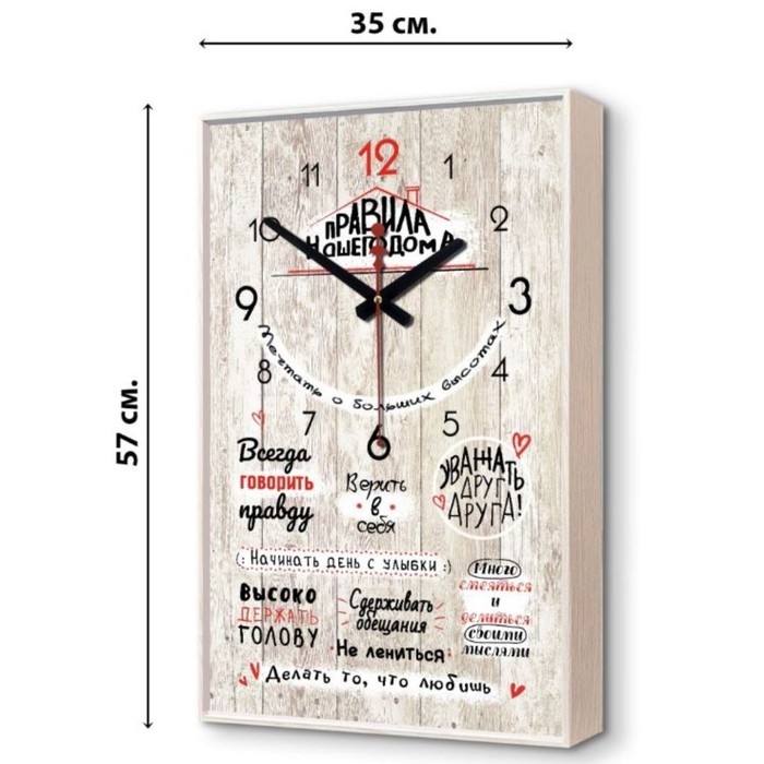 Часы-картина настенные, интерьерные "Правила нашего дома", плавный ход, 1АА, 57 х 35 х 4 см