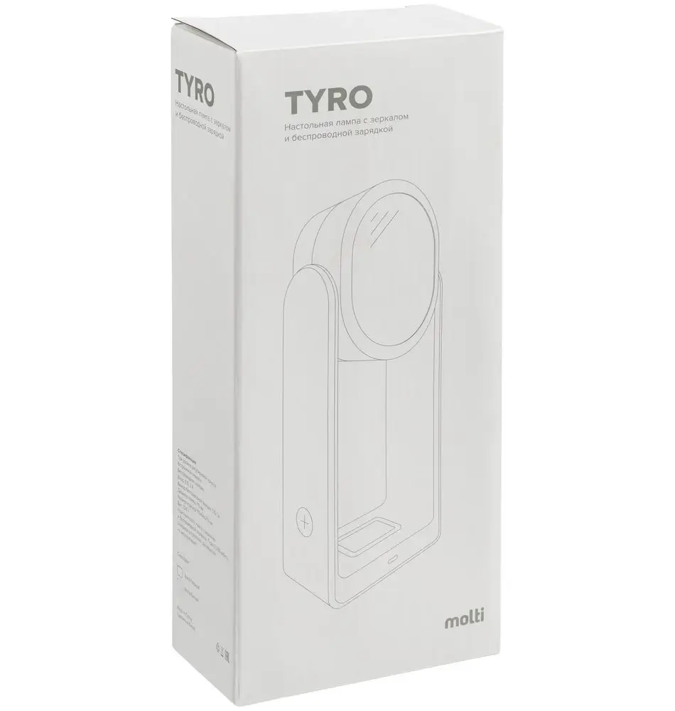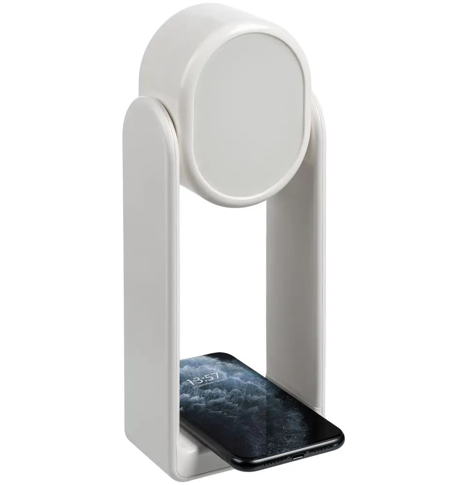 Настольная лампа с зеркалом и беспроводной зарядкой Tyro — это многофункциональное устройство: это и станция для беспроводной зарядки, и настольная лампа, и компактное зеркало.