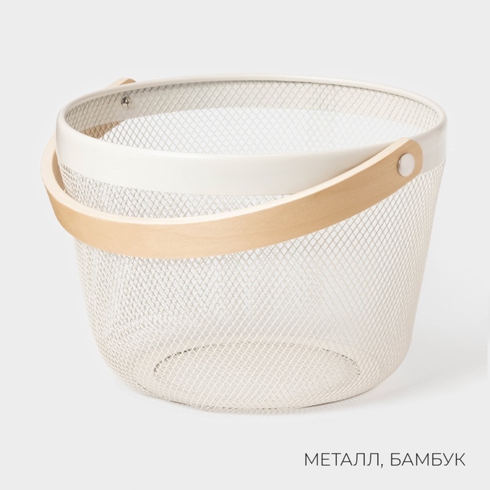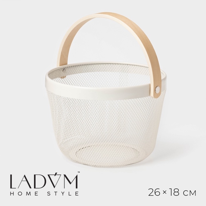 Круглая металлическая корзинка LaDо́m станет прекрасным дополнением вашего интерьера и поможет организовать хранение полезных мелочей. Игрушки, бытовая химия, предметы рукоделия – всё это и даже больше вы сможете разместить в стильной корзинке.