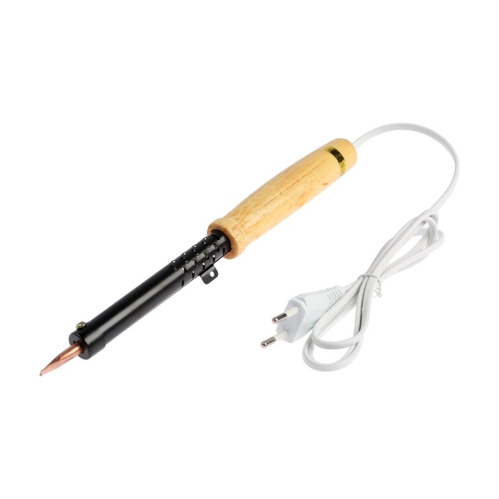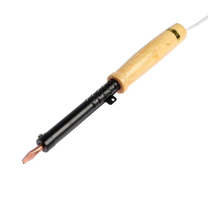 Паяльник ТУНДРА, ЭПСН, деревянная рукоятка, клиновидное жало d=6.2 мм, 80 Вт, 220 В