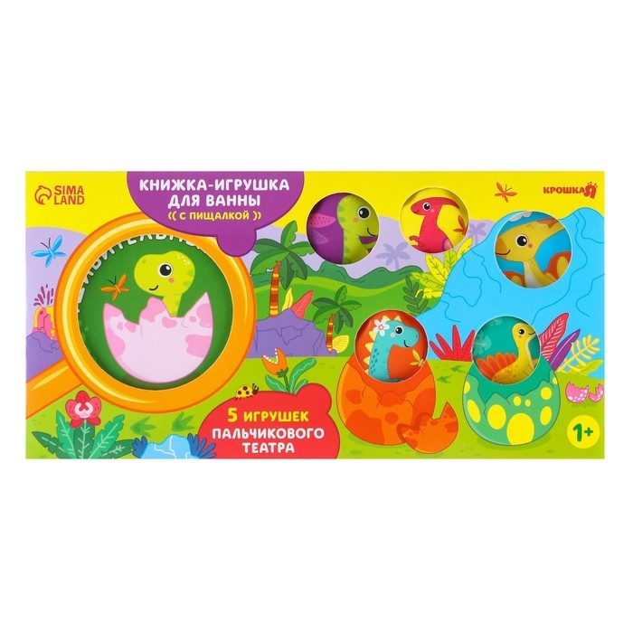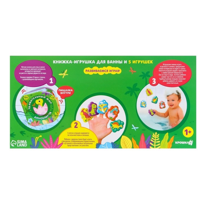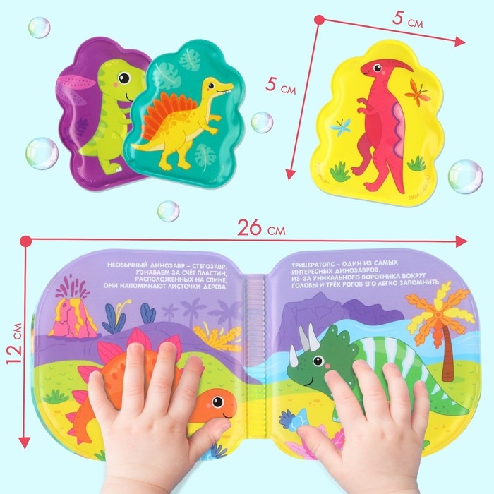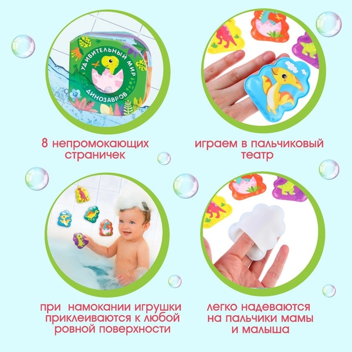 Игрушки для ванны «Удивительный мир динозавров» книжка и пальчиковый театр, Крошка Я
