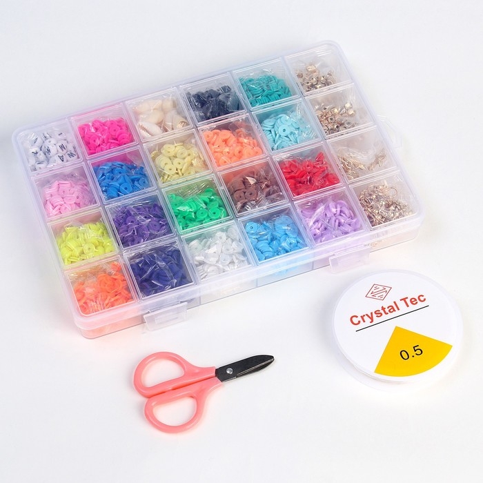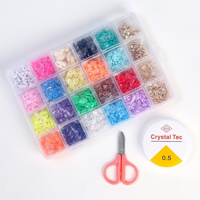 Набор для создания украшений «Яркие бусины», 21 цвет бусин, 4 вида фурнитуры + ножницы