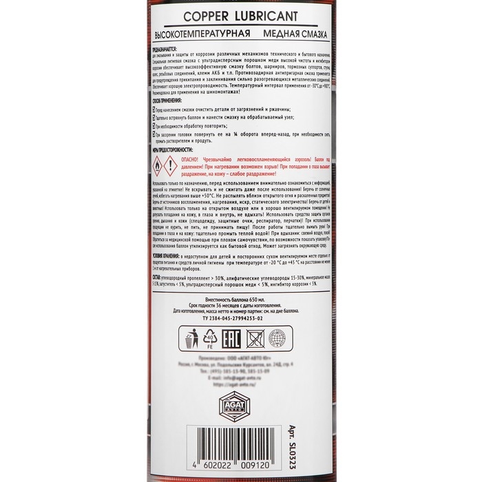Медная смазка Silverline предназначается для смазывания и защиты от коррозии различных механизмов технического и бытового назначения. Специальная пластичная смазка с ультрадисперсным порошком меди высокой чистоты и ингибитором коррозии обеспечивает высокоэффективную смазку болтов, шарниров, тормозных суппортов, ступиц колес, резьбовых соединений, клемм АКБ и т.п. Противозадирная, антипригарная смазка применяется для предупреждения прикипания и заклинивания сильно разогревающихся металлических соединений. Кроме того, защищает элементы (поверхности) от естественного износа, окисления и электролитической коррозии. Содержащийся в основе порошок меди высокой чистоты обеспечивает хорошую электропроводимость. После нанесения на поверхности образуется ультрамикронная плёнка меди, которая продолжает работать и защищать поверхность даже тогда, когда приходит в негодность («стареет») пластичная основа смазки.