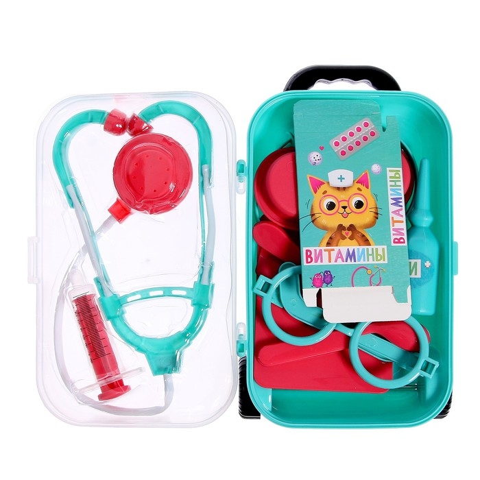 - медицинские инструменты; чемоданчик, в котором набор удобно брать с собой в гости, на прогулку или в путешествие.