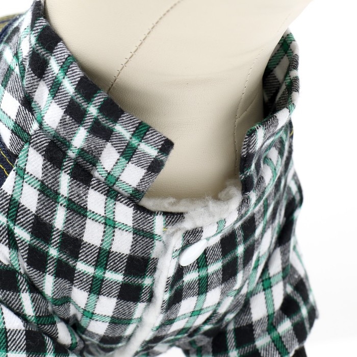 Элегантный дизайн комбинезона выполнен в виде джинсов и рубашки в клетку, который придает вашему питомцу оригинальный вид на прогулке.
