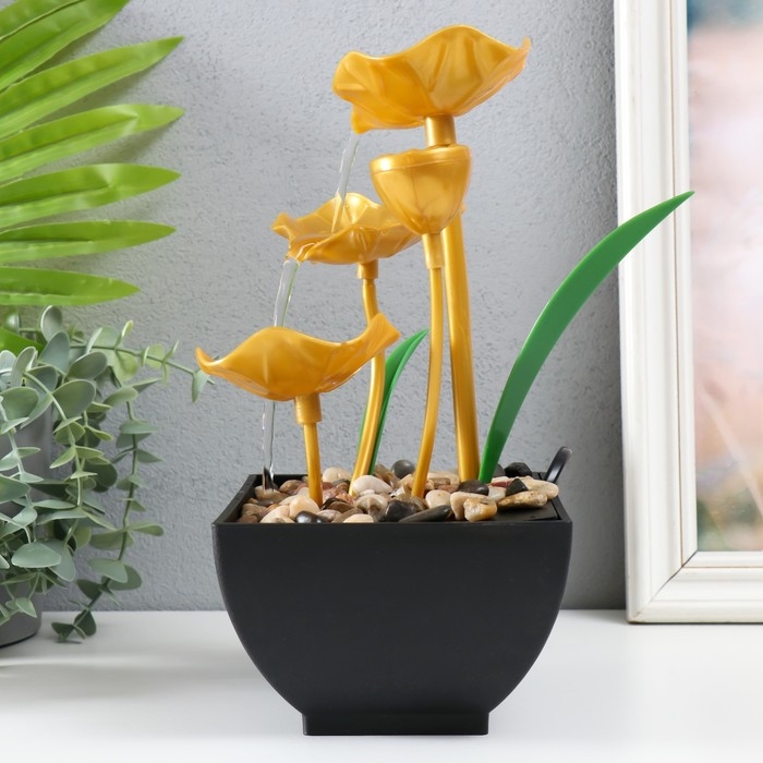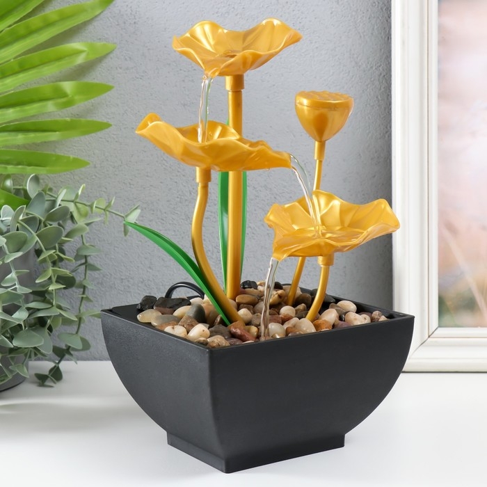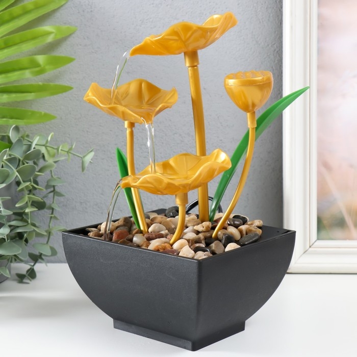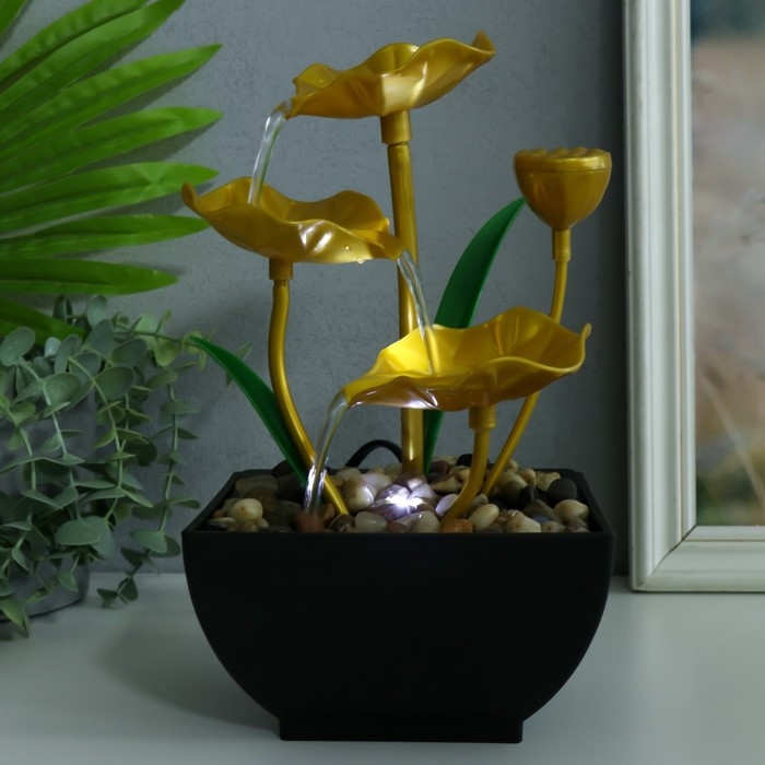 Фонтан настольный от сети "Золотые лотосы в пруду" 13х15х24,5 см